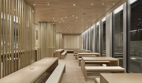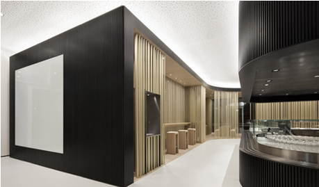 主题餐厅设计中,以极简的白色调辅以自然的淡灰色,赋予空间一致的调性。主功能区间以黑色调为主,消费体验区间以哑金、哑灰及木本色等为协调色,体现主题餐厅为消费体验者带来的舒适和独立空间的享受。